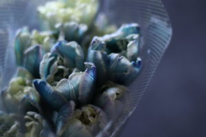 葉っぱがお野菜のようにギュッとしているのが新鮮なチューリップ。