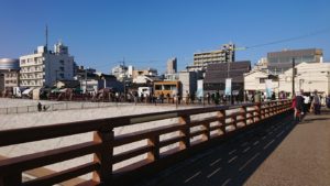 新しく造成された水辺の小径にもキッチンカーやテントが並んでいて、すでに皆さんが橋の方まで並んでいらっしゃる。