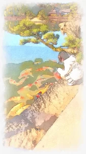 近くの鯉に挨拶をしました。