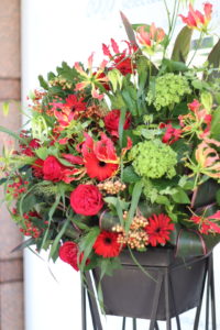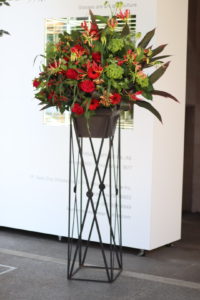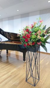 今回のピアノのお教室の発表会用のスタンド生花。今年のテーマカラーは「赤」。